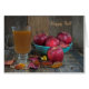 Apfelwein mit Herbstblättern und roten Äpfeln in türkisfarbener Schüssel auf rustikalem Stallholz