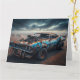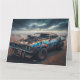 Blue Classic 1969 Chevy Camaro mit Blumen und Flecken Rost in der Wüste während der Apokalypse.