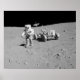 Astronaut David R. Scott vor dem Lunar Roving Vehicle während der dritten außergewollten Aktivität der Apollo 15 Mission (EVA-3). Er ist im Hadley-Delta stehend. Apollo 15 war die erste der Apollo "J" Missionen, die eine längere bleibe auf dem Mond und eine größere Mobilität auf der Oberfläche ermöglichen. Es gab vier Hauptziele, die in die allgemeinen Kategorien Mondoberflächenforschung, Mondorbitalwissenschaft und Ingenieurwesen-Betriebswirtschaft fielen. Ziel der Mission war es, die Region Hadley-Apennin zu erkunden, wissenschaftliche Experimente an der Mondoberfläche in Set zu setzen und zu aktivieren, technische Auswertungen neuer Apollo-Geräte vorzunehmen und Experimente im Mondorbitalbereich und fotografische Arbeiten durchzuführen. Die Erkundung und geologische Untersuchungen an der Landestelle Hadley-Apennin wurden durch den Zusatz des Lunar Roving Vehicle (LRV) verstärkt. Die Einrichtung des Apollo Lunar Surface Experiments Package, oder ALSEP, war die dritte in einem Trio operierender ALSEPs (auf Apollos 12, 14 und 15). Die Experimente der Orbitalwissenschaften konzentrierten sich auf jede Reihe von Instrumenten und Kameras im wissenschaftlichen Instrumentarium, oder SIM, Bay. Zu den technischen und betrieblichen Zielen gehörte die Bewertung von Modifikationen des Mondmoduls, oder LM, die für die Beförderung einer höheren Nutzlast und für einen bleibe von fast drei Tagen am Montag gemacht wurden. Änderungen am Apollo-Raumanzug und an dem tragbaren Lebenserhaltungssystem, oder PLSS, wurden evaluiert, und die Leistung des Lunar-Roving-Vehicle und der anderen neuen J-Missionsausrüstung, die mit ihm verbunden war - die Mondfunkrelais, oder LCRU, und die bodengesteuerte Fernsehbaugruppe, oder GCTA. Ein weiteres wichtiges Ziel der Mission war die Einleitung eines Subsatelliten für Partikel und Felder (P&F) durch das Kommando- und Dienstmodul (CSM), kurz vor Beginn des Rückkehr-auf-Erde-Teils der Mission. Der Subsatellit wurde entwickelt, um die Masse und Gravitationsvariationen des Mondes zu untersuchen, die Teilchenzusammensetzung des Raums nahe dem Mond und die Wechselwirkung des Magnetfeldes des Mondes mit dem der Erde.