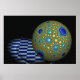 Apollonische Kugel Verpackung. Er ist nach dem griechischen Mathematiker Apollonius von Perga benannt. Drei-dimensionale schöne Mathematiker Fraktal digitale Kunst des goldenen Balls mit gestreiftem blau-weiß Hintergrund.