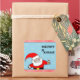 "Merry RX-mas" Aufkleber mit dem Apotheker oder Apotheker Santa Claus, der eine verschreibungspflichtige Flasche hält.