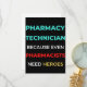 Pharmacy-Techniker, weil sogar Apotheker Helden-Design brauchen. Dies ist ein kurzes, lustiges Zitat, das als Dankeschön für Pharmacy-Techniker großartig ist. Auch geeignet als Apotheker Geschenke.