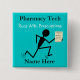 Apothekentechniker Namen-Abzeichen-Buttone mit dem stickman, das in der Hand mit Verordnung läuft. Perfekte Geschenke für Apotheke Tech-Abschluss oder -anerkennung.