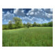 Eine üppige grüne Landschaft mit einem großen Grasfeld, umgeben von Bäumen unter einem tiefen blauen Himmel voller Wolken. Ein gegrabener toter Baum steht allein in der Mitte des Feldes. Ich nahm das ursprüngliche Foto auf der Weihnachtsbaumfarm meines Großvaters vom Blue Ridge Parkway in der Nähe von Extravaganter Gap, Virginia. Der graue Himmel wurde durch einen computergenerierten ersetzt, und die Landschaft bereicherte sich mit Tonkartierung und Orton-Effekten.
