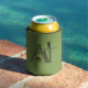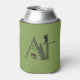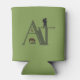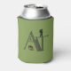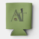 Die Buchstaben "AT" in olivgrün sind die Grundlage für das Design auf dieser Dose kühler. In der Schrift sind einige der natürlichen Attraktionen des Appalachen Trail inbegriffen, darunter die Silhouette eines wilden Pony, Wildblumen, die Silhouette eines Wanderers und eine Extraspitze auf dem "A", um den Bergen zu ähneln. Der Begriff "Der Appalachische Weg", der durch das Innere des breiteren Beins des "A" führt, vervollständigt das Design.