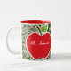 Apple auf dunklem Moosgrün-Damast Zweifarbige Tasse