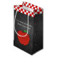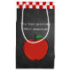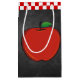 Stilvolle Tafel, die Geschenktasche des Lehrers, mit einem roten und weißen karierten Band, um die Spitze schauen, und ein großer roter Apfel. Weißer Text, auf der Front der Tasche liest zum besten Lehrer der Welt.