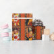 Halloween-Packpapier zeigt ein lustiges Bild von Kindern, die in einem Halloween-Party für Äpfel kochen. Ein Junge beobachtet, wie sein Zahn im Apfel abfliegt.
