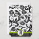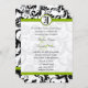 Vintage Schwarz-Weiß-Damast-Muster mit Apple Green Trim Hochzeitseinladungen. Ideal für Rokoko Barock, mittelalterliche Renaissance, Art Deco Art Nouveau, Roaring 20s Gatsby, Viktorianische Hochzeiten oder elegante Bauernhäuser Hochzeiten Themes Orte.
