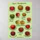 Wenn man die vielen Apfelsorten nebeneinander sieht, ist es so viel einfacher, ihre Unterschiede zu erkennen. Lassen Sie sich dieses gastronomische Poster praktisch machen, wenn Sie backen oder vor dem Einkaufen . . . oder, einfach genießen Sie es in Ihrem Speisesaal oder in der Küche! Jeder Apfelfreund wird die Schönheit dieser glänzenden, bunten Äpfel schätzen.