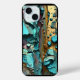 Ein abstraktes Design von felsigem Gelände in Schattierungen von Türkis, Braun und Gold ziert diese Apple iPhone 15 Hülle (Case Mate).