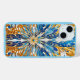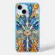 Ein abstraktes Design in Schattierungen von Blau, Gold und Weiß ziert diese Apple iPhone 15 Hülle (Case Mate).