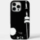 Cool & Klasse iPhone 16 robustes Gehäuse. Für geschäftige Toronto Vertriebsmitarbeiter, Besucher, Büroangestellte, Geschäftsinhaber. Toronto Tower mit Vollmond. Schwarzweißschablone. Foto.