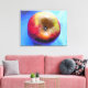 Ein Kunstdesign eines Apfels vor blauem Hintergrund.