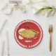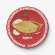 Papierteller mit einer lächelnden, nahezu vollständigen Apple Pie Cartoon Illustration. Die Zahlen für Pi sind für mehrere Dezimalstellen sichtbar. Dieses "Apple-Konzept" soll den Spaß am Kochen und Kalkulieren verbinden. Es macht Spaß und es ist nervös. Zwei Dinge, die sich wunderbar miteinander verbinden.
