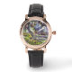 Uhr, Klassische Damenuhr mit schwarzen Lederarmband