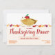 Eine horizontale Erntedank-Einladung mit Herbstfarben-Blätter und einem lächelnden, Cartoon, Apfelkuchen stehend in der Mitte. Die Einladung hat eine Herbstfarbe, weiß und creme Farbe. Der gesamte Text ist anpassbar.