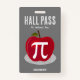 Hall Pass Abzeichen. Original Vektorkunst eines Apfels mit Pi-Symbol auf einer Platte.