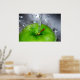 Ein Foto von Wasser, das von einem grünen Apfel abspritzt