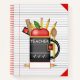 Lehrer's Apple und eine Tasse auf einem Notebook. Das Cover hat ein Bild eines Apfels in einer Tasse, klassisch gelbe Stifte, Lineale und eine schwarze Chalkboard-Tasse auf alten Schulurkunden. Wählen Sie Ihren eigenen benutzerdefinierten Titel oder fügen Sie einen Namen als optionale Option hinzu. Und entscheiden Sie über das Aussehen der inneren Seiten, und die Farbe der Spirale.