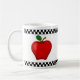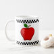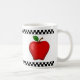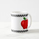 Beginnen Sie Ihren Morgen mit einer Tasse Kaffee in der charmanten Apple Tasse. Dieser glänzende Apfel ist eine originale Illustration, die von Debi Payne Designs erstellt wurde. Das kräftige Rot ist ein glänzendes Highlight, da das Licht von der Seite des Apfels reflektiert wird und mit einem braunen Dampf und einem grünen Blatt hervorgehoben wird, um seine reife Frische anzuzeigen. Der Apfel ist von einem klassischen schwarz-weißen Schachbrettbänder umgeben, der mit einem goldgelben Innenliner auf einem tiefroten Hintergrund besticht. Passen Sie Ihre Tasse an, indem Sie Ihren Namen oder einen beliebigen Text hinzufügen. Dies ist ein perfektes Geschenk für alle Lehrer, Koch, Koch, Arzt oder Krankenschwester.