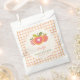 Senden Sie Ihren Gästen Zuhause mit einer Erinnerung Ihres besonderen Tages mit dieser charmanten Gefallen-Tasche aus der Kollektion "Der Apple of Our Eye". Die Tasche ist mit gemusterten Orange-, Rot- und Rosa-Äpfeln bestückt und mit einem Herzstück auf einem weichen Elfenbeinhintergrund personalisiert und trägt den Namen der Mutter für eine wohlüberlegte Touch. Das inspirierte Aussehen passt perfekt zu den Einladungen und dem Party-Dekor. Ideal für Leckereien, kleine Geschenke oder kleine Zwischenmahlzeiten, ist es eine angenehme Ergänzung zum Obstgarten eines kleinen Mädchens oder einer rustikalen Dusche.