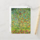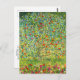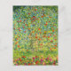 Eine Kunstpostkarte mit dem Gemälde des österreichischen Künstlers Gustav Klimt (1862-1918), Apfelbaum (1912). Eine farbenfrohe Darstellung eines roten Apfelbaumes im Obstgarten mit Wildblumen im Vordergrund.