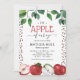 Ausgeklügelte Geburtstagseinladungen zum Thema Apfel mit Aquarellblättern und Äpfeln, einem Samenrahmen und einer modernen Geburtstagsschablone "Der Apfel unseres Auges", die leicht zu gestalten ist.