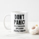 Diese wunderschöne weiße Tasse enthält den Satz 'Keine Panik! Ich bin ein Beruflicher Application Lifecycle Manager." Es ist der ideale Begleiter für Anwender in der Softwareentwicklung und im Projektmanagement und ist somit eine ideale Tasse für den täglichen Einsatz oder als Teamgeschenk bei Werbeaktionen und Meilensteinen.