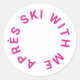Après Ski with me, heiß rosa Bachelorette Ski Themenabend, Rundaufkleber. Ideal für einen Bachelorette-Ski-Ausflug oder Après Ski-Junggeselinnen-Abschied-Favoriten. Entworfen, um unsere Après All Day Hot Pink Bachelorette Collection zu passen.