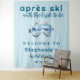 Après-Ski Winter Skifahren Sportliches Wasserfarben- Brautdusche-Willkommensschild Hintergrund - Fotobox-Partydekoration - Personalisierte Winter-Brautdusche-Dekoration - Après-Ski-Themen-Brautdusche - Der perfekte Willkommensschild-Teppich für eine Skibratdusche oder ein Après-Ski-Winter-Wunderland-Brautfrühstück. Mit Wasserfarben-Illustration von Schneebrillen. Mit einer Mischung aus retro-sportiger Schrift und lustiger Schrift auf einem hellblauen Hintergrund. Perfekt für eine Braut, die Skifahren und Wintersport liebt. Passen Sie dieses bearbeitbare Winter-Brautdusche-Willkommensschild mit allen Ihren Veranstaltungsdetails an.