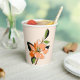 Dieser schöne Papierbecher mit einer großen Aprikose-Single-Azalea vor einem warmen cremefarbenen Hintergrund. Ein sauberes, einfaches und dennoch auffälliges originelles Design, das die Serie von Geschirr, Tischwäsche, Uhren u.v.m. mit HoMeArts Azalea koordiniert.