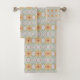 Sehr hübsches, gemustertes Handtuchhandtuch Set mit Aprikose, Grüntöne und rosa Design. Der sehr helle pfirsichfarbene Hintergrund kann auf eine beliebige Farbe umgeschaltet werden, um der Wohngestaltung zu entsprechen. Das Muster ist ebenfalls abnehmbar, und die Handtücher können in jeder beliebigen Farbe Anzug werden. Text kann hinzugefügt werden, um für sich selbst zu personalisieren oder ein schönes individuelles Geschenk.