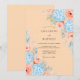 This design features a soft apricot backdrop adorned with delicate watercolor illustrations. Lush light blue hydrangeas and gentle pink roses bloom from the corners, creating a serene and romantic aesthetic. The airy palette is perfect for a sophisticated seasonal event filled with artistic botanical elements.