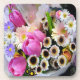 Ein Blumenstrauß mit hübschen Frühlingsblumen, mit rosa Tulpen, Anemonen und anderen Blume.