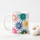 Diese Tasse hat ein Design von Blume und Regentropfen auf einem weißen Hintergrund.
