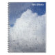 Ein Notizbuch mit einem Foto Regentropfen auf einem Fenster verlassen nach einer Regendusche im April mit einer großen weichen Cumulonimbuswolke im Hintergrund. Bearbeiten Sie den Text, um Ihren eigenen Titel oder Namen hinzuzufügen.