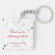 Quadratischer doppelseitiger AcrylSchlüsselanhänger mit einem Bild der reizenden Damen, die an einem Café in Paris genießt einen reizenden April-Tag in einem Schwarzweiss-Schachbrettrahmen sitzen, schmückte mit einem roten Bogen und einigen Marienkäfern auf einem gewaschenen heraus Bild schwarzer Eiffel-Türme auf Weiß. Die Rückseite hat das gewaschene heraus Bild der schwarzen Eiffeltürme auf Weiß mit einigen Marienkäfern und optionalem Text. See großen quadratischen erstklassigen MetallSchlüsselanhänger und -halskette zusammenbringend. Sehen Sie die gesamte Cancan-Schlüsselanhängersammlung im SPEZIELLEN TOUCHS | Gastgeschenkeabschnitt.