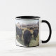 Drei Angus schauen auf die Kamera mit einer Herde von Schafen und Ziegen im Hintergrund. Diese Ranch-Szene ist ein Foto, modifiziert, um ein künstlerisch gemaltes Aussehen zu erhalten. Verwenden Sie die Anpassungsfunktion, um Text Ihrer Wahl hinzuzufügen.