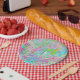 Aqua and Hot Pink Sunrise in My Rubio Garden Pappteller