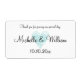 Maßgeschneiderte türkisblaue Wasserfarben Hochzeitswein oder Wasserflaschen Etiketten. Personalisierte elegante Wasserflaschenaufklebervorlage mit verwittertem Vintagem Herz. Stilvolle Skripttypografie für Namen von Braut und Bräutigam und danke Ihnen Nachricht. Verwenden Sie als klassische Tischdekoration oder danken Sie für die Gäste des Party. Enthält Name oder Monogramm plus Heiratsdatum. Romantisches Landchic Design mit rustikalem Druck. Auch gut für Hochzeiten zum Thema Strand. Aquarellmalerei.