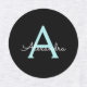 Aqua Aquamarin Blue Script Girly Monogram Name Etiketten