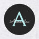 Black und Aqua Aquamarin Blue Script Monogram Name Clothing Iron Label. Das macht den perfekten 16 Geburtstag, Hochzeit, Brautparty, Jubiläum, Babydusche oder Junggeselinnen-Abschied Geschenk für jemanden, der Lieben glamourösen Luxus und schicke Stile.