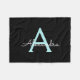 Aqua Aquamarin Blue Script Girly Monogram Name Fleecedecke