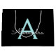Aqua Aquamarin Blue Script Girly Monogram Name Große Geschenktüte
