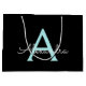 Black und Aqua Aquamarin Blue Simple Script Monogram Name Gift Bag. Das macht den perfekten 16 Geburtstag, Hochzeit, Brautparty, Jubiläum, Babydusche oder Junggeselinnen-Abschied Geschenktasche für jemanden, der Lieben glamourösen Luxus und schicke Stile.