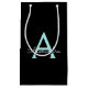 Black und Aqua Blue Aquamarin Simple Script Monogram Name Geschenktasche. Das macht den perfekten 16 Geburtstag, Hochzeit, Brautparty, Jubiläum, Babydusche oder Junggeselinnen-Abschied Geschenktasche für jemanden, der Lieben glamourösen Luxus und schicke Stile.