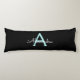 Black und Aqua Aquamarin Blue Einfache Script Monogram Name Body Kissen. Das Kissen macht den perfekten 16 Geburtstag, Hochzeit, Brautparty, Babydusche oder Junggeselinnen-Abschied Geschenk für jemanden, der sein Zimmer in Rose Gold dekoriert.