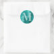 Erstellen Sie für ihre besondere Veranstaltung einen personalisierten gürtelhaften Namen und mit Monogramm Umschlag Aufkleber-Aufkleber. Aqua aquamarin Gradienten gefärbt digitale Kunst Imitate Folie Grafik. Hellgrüner Schaum und weißes, zeitgenössisches Monogramm mit elegantem Kalligraphie-Design-Set auf einem klassischen Rundaufkleber.