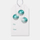 Imitate Glitzer Silberbaumlampen sind die Merkmale auf der Vorderseite dieser eleganten Holiday Geschenktipps. Die glitzernden Bilder werden auf einem Farbverlauf aqua aquamarinen Hintergrund mit Bits von Imitaten silber Glitzer an der Spitze platziert. Der untere Teil enthält einen eigenen silbernen Text, der derzeit "MERRY CHRISTMAS HAPPY NEW YEAR" steht. Die Rückseite des Tags ist silberweiß, mit Glühbirnen aus Aqua-Glitzer und einem Textfeld.